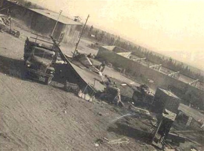 נזקי הסופה בסככת הטרקטורים, 1958
