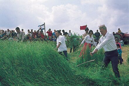 טקס קציר העומר - בוצע לראשונה בנחאביר, בערב פסח, תש"ח (1948). הטקס חודש בבארי בשנת תש"י (1950) וקוים מדי שנה, ביום שלפני ליל הסדר, עד אמצע שנות ה–60. מאז חלו הפסקות בקיום הטקס. בשנים 1974 עד 1977 בוצע טקס העומר ע"י בני ה"חטיבה". ב–1986 חודש טקס העומר ע"י ניר אילן ומאז מתבצע ברציפות עד היום. בטקס - מסכת קריאה מפרי עטו של אנדד אלדן, מלווה בשירה ובהופעות מחול. הטקס נערך על במה בפאת שדה תבואה ובסיומו, נקצר העומר בחרמשים, נאלם לאלומות בידי המאלמות ומובל בסך לחדר-האכילה, לטקס הבאת העומר, הפותח את ליל הסדר של פסח.