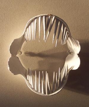 בעבודות הנייר החדשות של ליאב מזרחי, בונה מזרחי לסתות של דגים טורפים, כרישים ויצורים אחרים בעלי אופי מורבידי המתמוססים אל תוך הקיר המקבל את פני הצופים. בתערוכה זו מעמיק ליאב מזרחי את עיסוקו בעולם הטבע ובעלי החיים . בעבודות המוקדמות הופיעו הצבאים, שסימלו באיקונוגרפיה הנוצרית את התגלותו של ישו הקורבן המקודש והצטרפו לחיות נטרפות אחרות. בהמשך חל מפנה חד בנקודת מבטו של מזרחי והוא החל ליצור ייצוגים של הטורפים ולא של הנטרפים: הקורבן הפך למקרבן. הציפור המתה החליפה מקומה לציפור טרף... הכרישים היוצאים מהקיר עם שיניהם החדות הטורפות חושפים פעולה אגרסיבית כוחנית, אקט אלים שעובר לצופה דרך פילטר מרוכך ועדין, באמצעות בנייה ועיצוב בנייר לבן, חומר פשוט ויומיומי, שהאמן מצליח להאדיר אותו ולהפוך אותו לסימן ההיכר שלו. לסתות הכרישים והדגים שעל הקיר מעלים על הדעת מאובנים ארכיאולוגיים, גם הם מתקשרים לעולם הדומם של המוות, לזיכרון שנשאר אחרי הכל. האמן מדמה את חלל הגלריה כפני מוזיאון לטבע, ומציב על שני פודיומים מעין שרידי גבישים, קריסטלים עם פנינים בקצותיהם, כשגם אלו עשויים להפליא מנייר וסיכות.