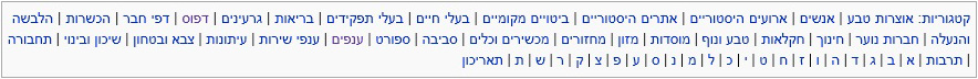 בתחתית העמוד מופיעים קישורים לקטגוריות רבות לפיהם ממוינים הערכים בוויקיבוץ. תוכלו לחפש שם ערכים המעניינים אתכם לפי נושאים, או לפי הא"ב, או ללחוץ על המילה "קטגוריות" ולצפות בכל המבחר. כמובן שניתן גם לחפש כל ערך מבוקש במשבצת "חיפוש" שבצד ימין.
