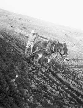 מיכאל גדיש ז"ל, ממייסדי בארי, חורש את אדמות נחביר
