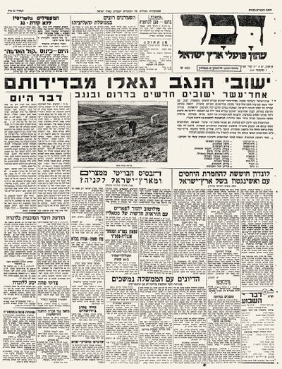 עליית י"א הנקודות בכותרת עיתון "דבר" 7.10.1946