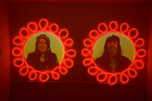קרן גלר מציגה בחלל הוידיאו מיצב וידיאו ואור המורכב מדיוקנאות של אנשים מבוגרים מחופשים, שהגיעו למסיבת תחפושות שערכו הוריה של גלר בחג פורים. כל אחד מהמצולמים מישיר מבט למצלמה, מחייך ומפסיק לחייך, דבר החוזר על עצמו ללא הפסקה.