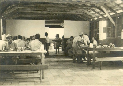 [[תמונה:HadarOchel_Zrif.jpg|right|thumb|800px|הקמת צריף חדר אוכל הקודם, 1956]]