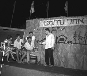 '''חג המחזור''' - ב–1963 סיימו בני קב' "[[אשל]]" (המחזור הראשון) את לימודיהם בביה"ס. חג המחזור באותה שנה היה מלווה במספר ארועים: בליל שבת ובמוצ"ש (6-5 ביולי), נערך משפט פומבי בניהול בני המחזור, על "סיכוייו של הקיבוץ בעתיד". באמצע השבוע נערכה אסיפת חברים, בה אושרו כל בן ובת לחברות בהצבעה אישית ובליל שבת נערך טכס קבלתם לחברות ומסיבה חגיגית, מלווה בקריאת "[[צרפונו אליכם]]", "דבר הבנים" ומופע ב"אופרטה" היתולית, פרי עטם של בני המחזור. לסיום, (במוצ"ש) - הופיעו בני המחזור במחזה - "סוקרטס והנערה". מאז התגבשה מסורת של חג המחזור ובה טקס חלוקת תעודות, נאומי ברכה וסיכום וחלוקת שי לבוגרים. לסיום החג מתקיימת הצגה או לקט מערכונים ופיזמונים, בהומור וסטירה, מפרי עטם של בני המחזור ובביצועם. עם סגירתו של ביה"ס בבית ואי-קבלת הבוגרים לחברות, הפכו חגי המחזור למסיבה היתולית-סטירית, המטילה את אורחות חיי הקיבוץ ואירועיו למבחן הביקורת הצעירה והרעננה. | '''חג המחזור''' - ב–1963 סיימו בני קב' "[[אשל]]" (המחזור הראשון) את לימודיהם בביה"ס. חג המחזור באותה שנה היה מלווה במספר ארועים: בליל שבת ובמוצ"ש (6-5 ביולי), נערך משפט פומבי בניהול בני המחזור, על "סיכוייו של הקיבוץ בעתיד". באמצע השבוע נערכה אסיפת חברים, בה אושרו כל בן ובת לחברות בהצבעה אישית ובליל שבת נערך טכס קבלתם לחברות ומסיבה חגיגית, מלווה בקריאת "[[צרפונו אליכם]]", "דבר הבנים" ומופע ב"אופרטה" היתולית, פרי עטם של בני המחזור. לסיום, (במוצ"ש) - הופיעו בני המחזור במחזה - "סוקרטס והנערה". מאז התגבשה מסורת של חג המחזור ובה טקס חלוקת תעודות, נאומי ברכה וסיכום וחלוקת שי לבוגרים. לסיום החג מתקיימת הצגה או לקט מערכונים ופיזמונים, בהומור וסטירה, מפרי עטם של בני המחזור ובביצועם. עם סגירתו של ביה"ס בבית ואי-קבלת הבוגרים לחברות, הפכו חגי המחזור למסיבה היתולית-סטירית, המטילה את אורחות חיי הקיבוץ ואירועיו למבחן הביקורת הצעירה והרעננה. | ||