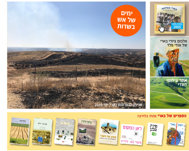 גל השריפות ב״עוטף עזה״, קיץ 2018http://212.116.164.25/Wikibbutz/images/d/d1/Beeri_CookBook_2005_s.pdfציורי בארי של אודי פלדצילומי דונדי שוורץמאותו הכפרספר המחזוריםדברי ערך - לקסיקון בארישיחת קיבוץמסע אל העברכאן המקוםפינת טבעמאה יומונים נבחרים