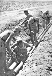 מטילים מים ליד צינורות המים של קו ניר-עם